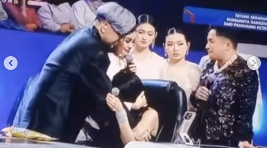 Alih-alih menjawab, Denada hanya menggeleng kepala. Beberapa detik kemudian, air matanya tumpah. Ia pun menangis sesegukan, membuat seluruh kru dan rekan juri terkejut. Irfan Hakim, Caren Delano, dan Iis Dahlia segera memeluknya untuk memberikan dukungan.