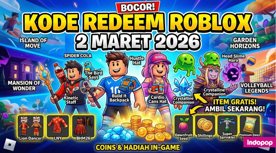 Ribuan pemain Roblox menantikan pembaruan item gratis setiap harinya. Pada hari Senin, 2 Maret 2026, sejumlah kode redeem Roblox terbaru dan masih aktif kembali beredar untuk diklaim oleh para pemain di seluruh dunia.