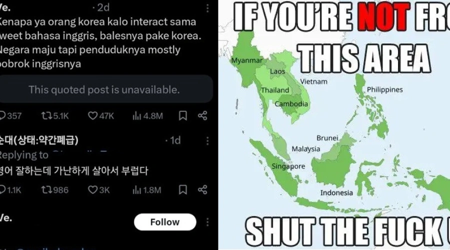Media sosial X tengah diramaikan perang komentar antara warganet Korea Selatan (Knetz) dan warganet Asia Tenggara (SEA). Konflik lintas negara ini bahkan melahirkan istilah “SEAblings”, simbol solidaritas netizen Asia Tenggara menghadapi dugaan komentar bernada rasis.