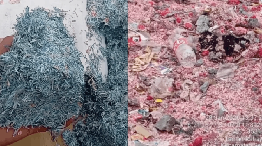 Video yang pertama kali diunggah oleh akun Instagram @sahabatpedulilingkungan pada 28 Januari 2026 itu menunjukkan cacahan kertas berwarna merah menyerupai pecahan Rp100.000 dan biru menyerupai pecahan Rp50.000.