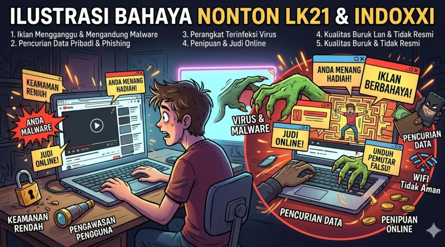 Ilustrasi bahaya nonton LK21 dan Indoxxi.