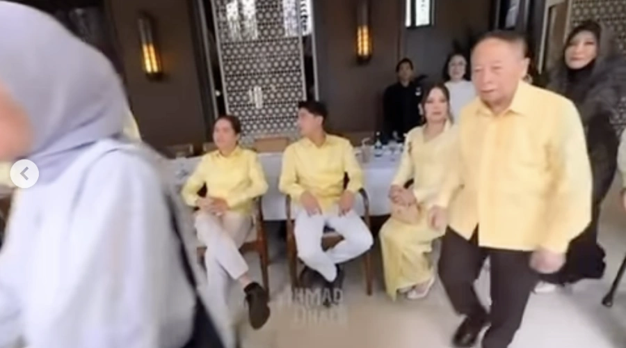 Namun, momen berubah ketika dari arah pintu belakang, muncul rombongan yang dikenali sebagai keluarga dari ibu kandung El Rumi, Maia Estianty. Terlihat jelas sosok ayah dan ibu Maia, Harjono Sigit dan Kusthini, melewati area tersebut.