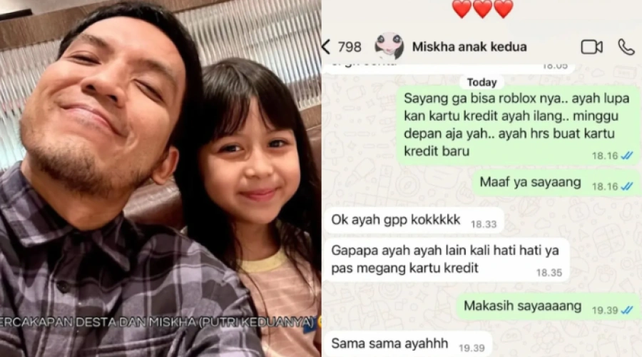 Desta membagikan chat antara dirinya dengan Miskha, anak keduanya. Dalam chat terungkap bahwa Desta batal memberikan game untuk putrinya lantaran kartu kreditnya hilang.