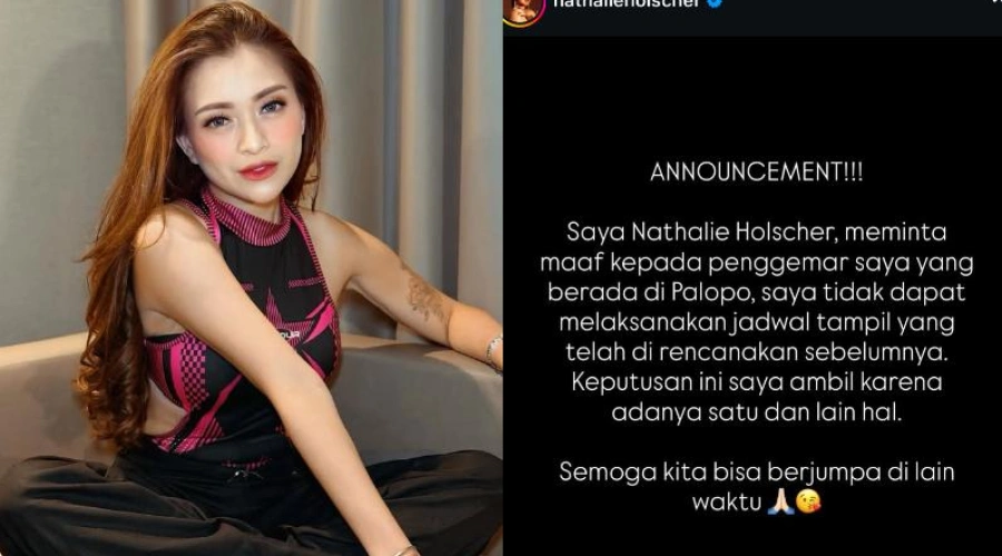 "Saya Nathalie Holscher meminta maaf kepada penggemar saya yang berada di Kota Palopo, saya tidak dapat melaksanakan jadwal tampil yang telah rencanakan sebelumnya. Keputusan ini adanya satu dan lain hal, semoga kita bisa ketemu di lain waktu," tulis Nathalie di Instagram, @nathalieholscher, Jumat (13/2/2026).