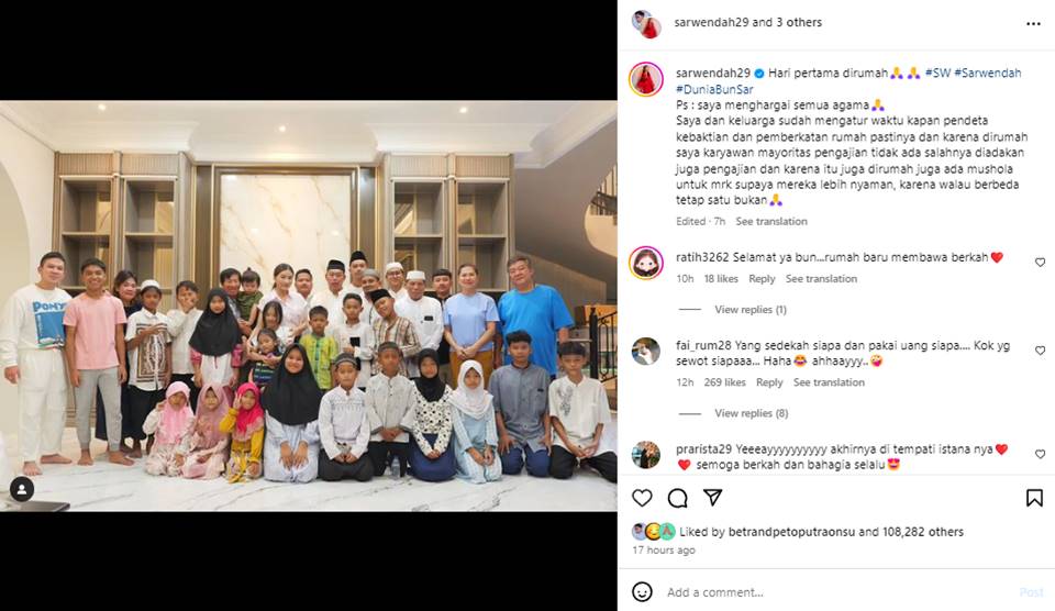 "Bukan mencampuri cuma menyayangkan kenapa ga undang Pastur / Pendeta untuk pemberkatan rumah ?" tanya netizen. "Tuhan siapa yang disembah sih bun? Hanya mengingatkan masih banyak panti asuhan Kristen yang msh membutuhkan uluran tangan," sambung netizen.