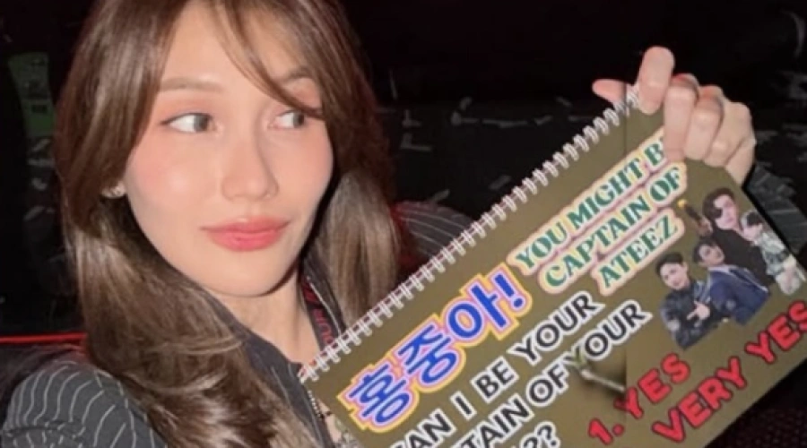 Momen tersebut terekam dalam foto dan video yang beredar luas di media sosial, memperlihatkan ibu satu anak itu tampak sumringah dan larut dalam euforia penampilan ATEEZ di Singapura.