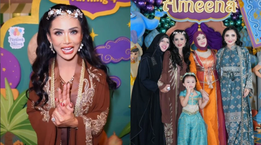 Bahkan, penampilannya di pesta ultah itu juga sukses bikin salfok. Pasalnya, ia tampak mengenakan busana mirip princess Jasmine.