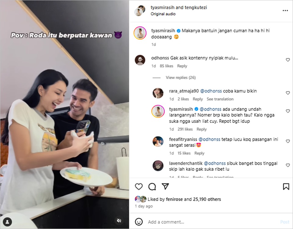 Diketahui belakangan ini Tyas dan Tengku Tezi memang rajin mengunggah konten kocak soal rumah tangga.