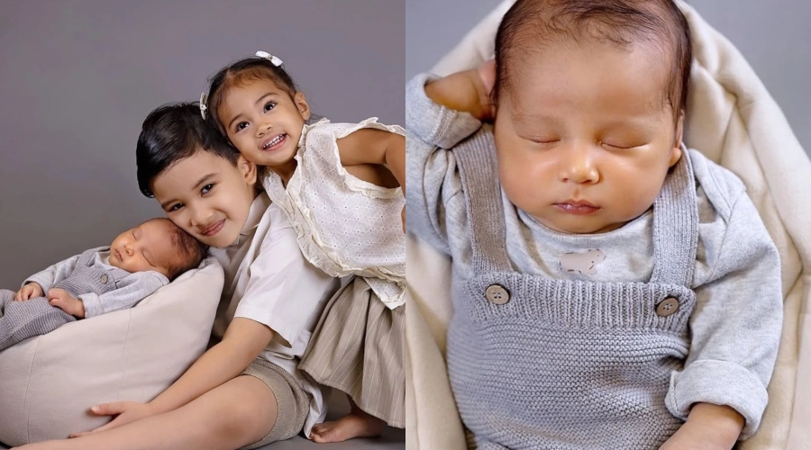 Dalam foto tersebut, ketiganya terlihat gemas dan penuh keceriaan. Senyum polos mereka yang menghadap ke kamera seakan menggambarkan kebahagiaan keluarga kecil yang kini semakin lengkap.