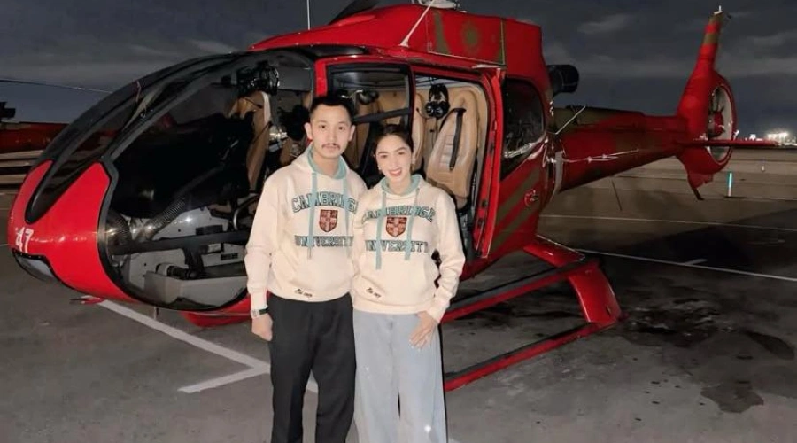 Di tengah gemerlap kota Nevada itu, pasangan ini menikmati momen romantis yang berkesan dengan naik helikopter mengelilingi Las Vegas di malam hari.