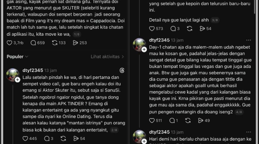 Meskipun pengguna Threads tidak berniat melanjutkan hubungan, rasa penasaran membuatnya menantang aktor tersebut untuk membuktikan sikapnya.