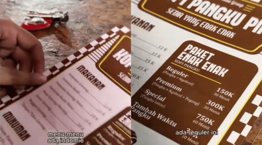 Di balik viralnya video kedai "Kopi Pangku PIK" yang beredar di media sosial pada Januari 2026, perhatian warganet kini tertuju pada daftar menu yang ditawarkan. Bukan sekadar menu makanan, kedai ini secara terang-terangan mencantumkan daftar harga untuk layanan interaksi dengan pramusaji.