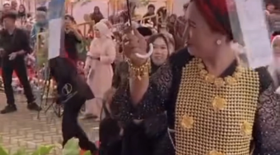 Beredar sebuah video viral di media sosial yang memperlihatkan seorang ibu di Banjarmasin, Kalimantan Selatan, mengenakan rompi dari emas saat menghadiri sebuah pesta pernikahan.
