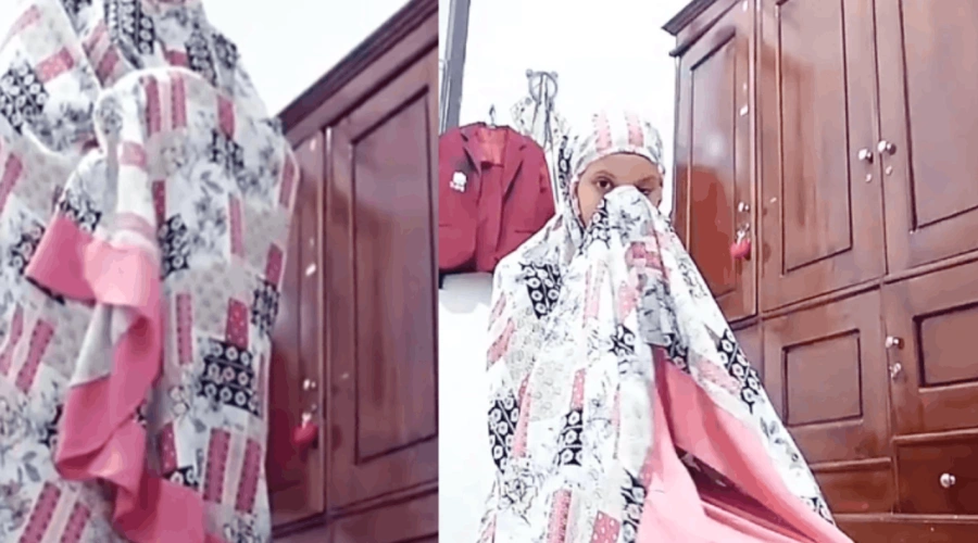 Mukena pink bermotif geometri yang awalnya hanya sekadar latar, kini justru menjadi "kode" utama dalam petualangan warganet.