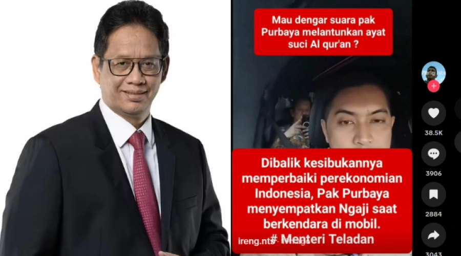 "Di balik kesibukannya memperbaiki perekonomian Indonesia, Pak Purbaya menyempatkan ngaji saat berkendara di mobil. #Menteri Teladan," tulis akun tersebut.