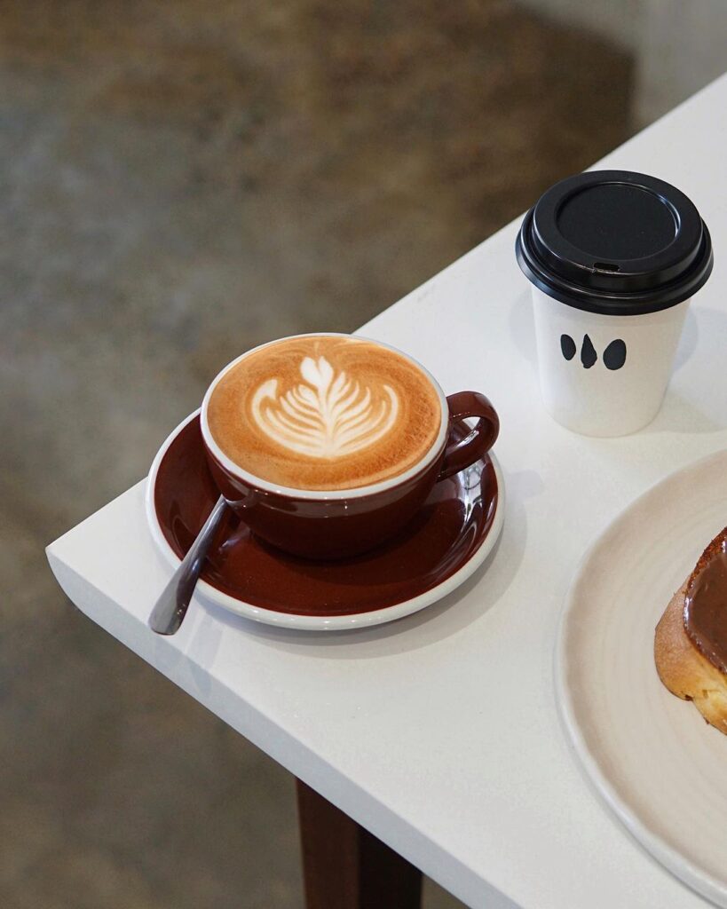 Dari depan, kafe ini tampak simpel dengan akses putih mendominasi fasadnya. Ada sejumlah tanaman yang di pot besar yang menghiasi pintu masuk.