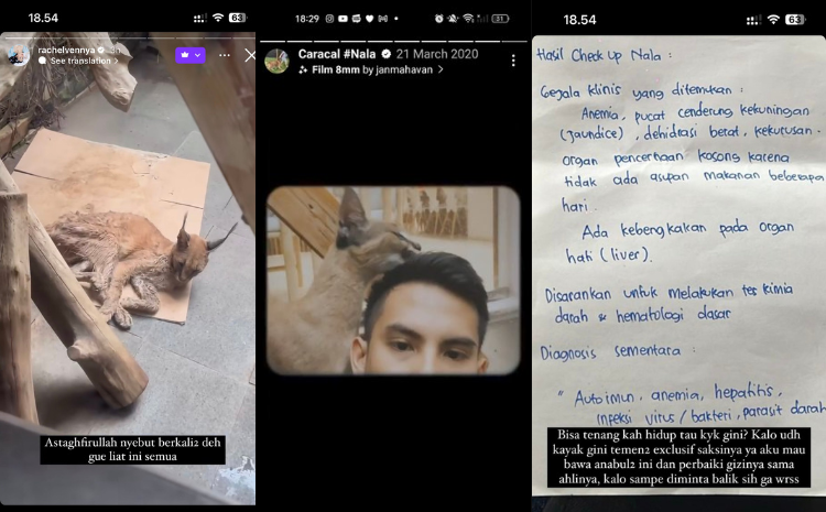Kondisinya tidak sehat dan jauh dari tampilan yang kerap dibagikan Okin di akun Caracal Nala. Rachel pun memanggil tim medis hewan.