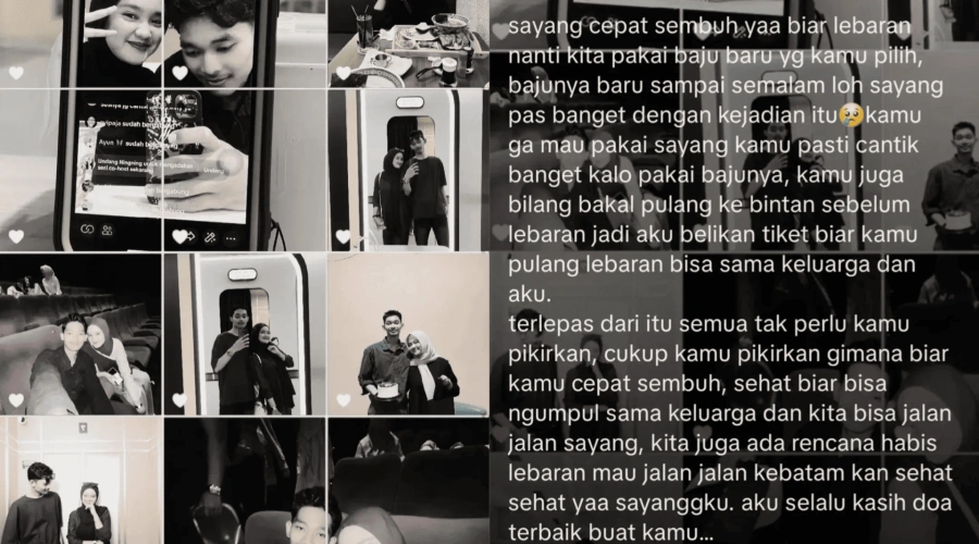 Melalui akun Instagram pribadinya, Ferdi mengunggah sejumlah momen kebersamaannya dengan sang kekasih yang saat ini terbaring lemah di rumah sakit. Unggahan tersebut memperlihatkan kolase foto kemesraan mereka di berbagai kesempatan yang terlihat bahagia.