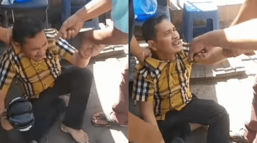 Pria tersebut terlihat diseret oleh beberapa orang di malam hari dalam kondisi yang tampak tegang.