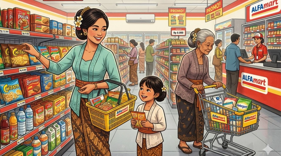 Ilustrasi belanja di Alfamart. [Google AI]