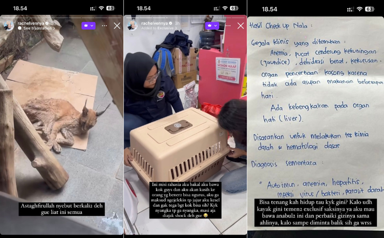 Rachel pun segera mencari bala bantuan. Pada story selanjutnya, terlihat tim medis sudah menangani Nala. Mereka membawanya menggunakan kandang yang proper.