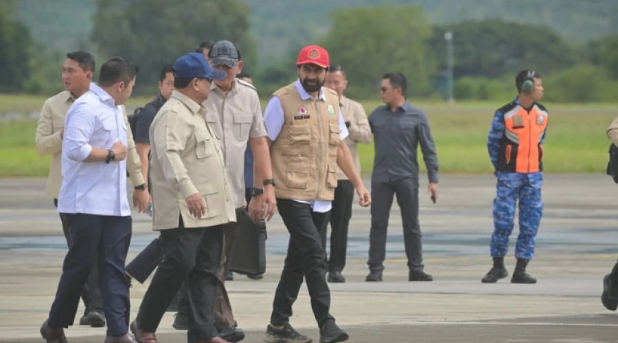 Foto Gubernur Aceh, Muzakir Manaf, bersama Presiden Prabowo saat keduanya kembali meninjau kondisi Aceh pasca banjir bandang akhir November 2025, ramai diperbincangkan di media sosial.